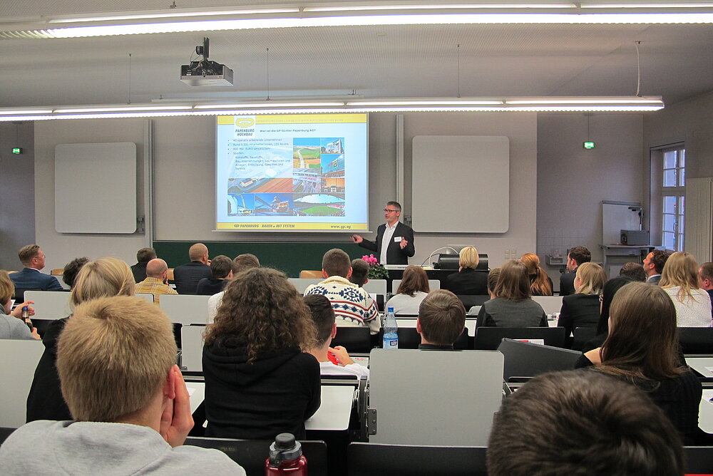 Johannes (29) hat gerade seinen Bachelor im Bauingenieurwesen gemacht. Jetzt möchte er sich einen Überblick über die „relevanten und großen Unternehmen der Region verschaffen, erfahren, welches Spektrum sie abdecken“, erzählt er. Daher besuchte er am Mittwochnachmittag die neueste Auflage der Veranstaltungsreihe „Unternehmen zu Gast“, bei der sich acht Firmen den Studierenden der Fakultät Bauwesen und anderen Interessierten präsentierten.