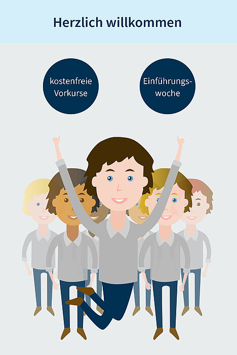 Ist das nicht so? Dann erleichtern Sie sich Ihren Studienstart: Frischen Sie Ihre Kenntnisse auf oder schließen Sie Wissenslücken. Nutzen Sie unsere kostenfreien Vorkurse unmittelbar vor Studienbeginn.