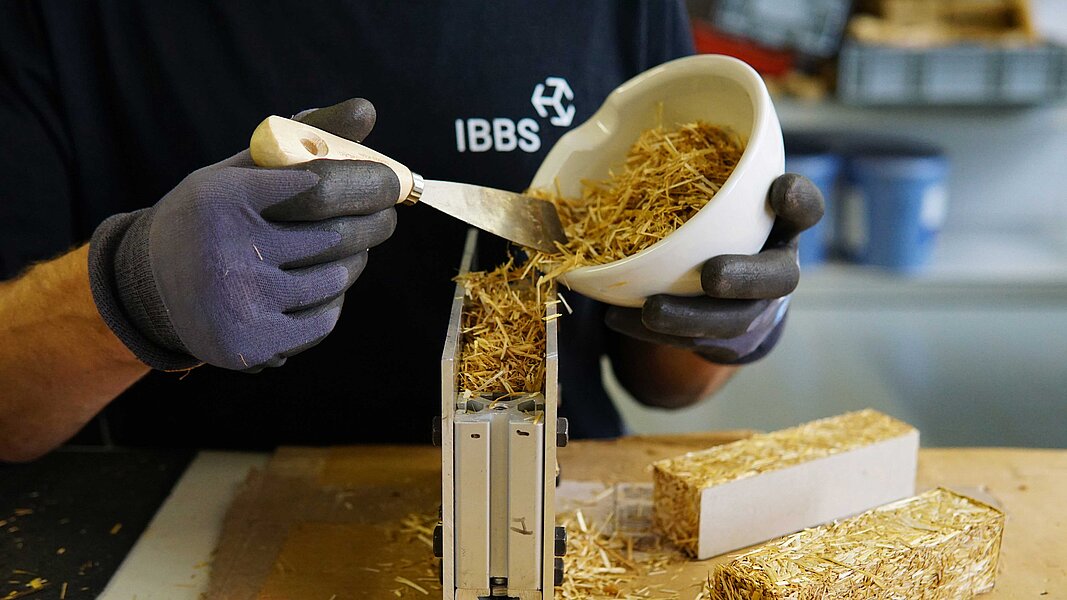 | Das Forschungsprojekt „AirWaterHarvest“ beschäftigt sich mit der passiven Wassergewinnung aus der Luft, also ohne Zufuhr elektrischer Energie. Dazu ist ein Substrat nötig, das Feuchtigkeit aufnehmen, speichern und wieder abgeben kann. Zu sehen ist eine Substratplatte aus Torfmoos (auch Sphagnum-Moos genannt), in welche Sensoren eingebracht werden, um anschließend Tests in der im Hintergrund sichtbaren Klimakammer durchzuführen.
