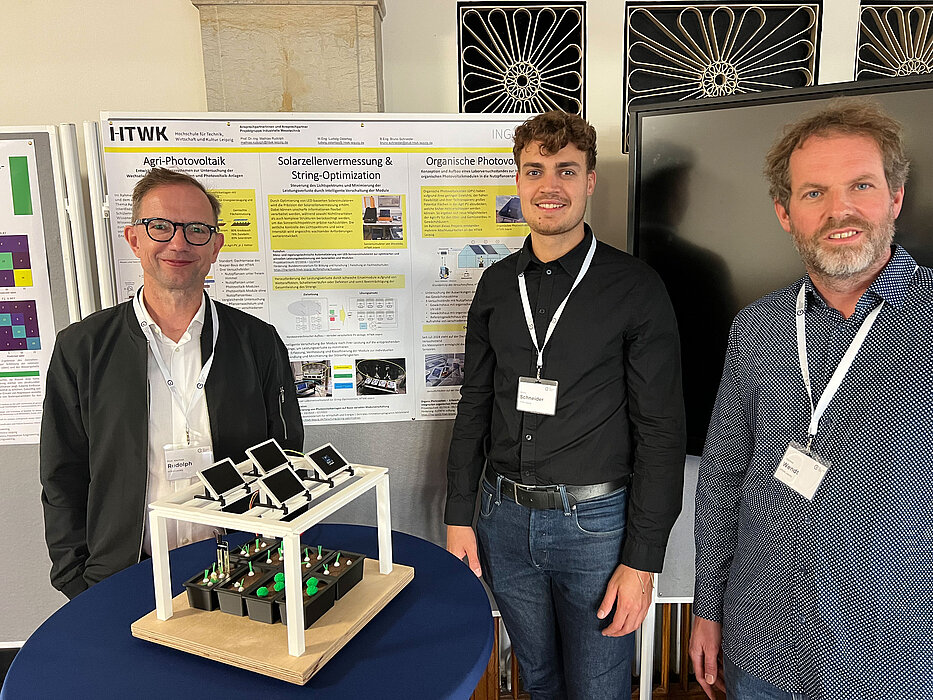 Einblicke in drei weitere Forschungsprojekte gewährt das Team um Mathias Rudolph, Professor für Industrielle Mechanik: neben dem zur anwendungsorientierten Solarzellenvermessung auch zur Agri-Photovoltaik (Agri-PV) und zur organischen Photovoltaik (OPV). Agri-PV verbindet die Energieerzeugung mit der Landwirtschaft. OPV-Folien sind extrem leicht, flexibel und unzerbrechlich und bieten damit vielfältige Einsatzmöglichkeiten zur Erzeugung umweltfreundlicher elektrischer Energie.